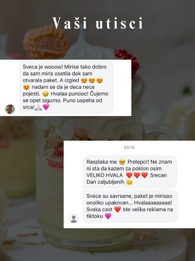 Naizgled jestive sveće koje podsećaju na najukusnije poslastice koje mogu da se sretnu u luksuznim poslastičarnicama! 🧁🥐 Pored svog neodoljivog izgleda imaju i ekološku ulogu jer upotrebom biljnih voskova i prirodnih materijala čuvamo planetu, životnu sredinu i vodimo računa o čovekovom zdravlju! 🌱🌎