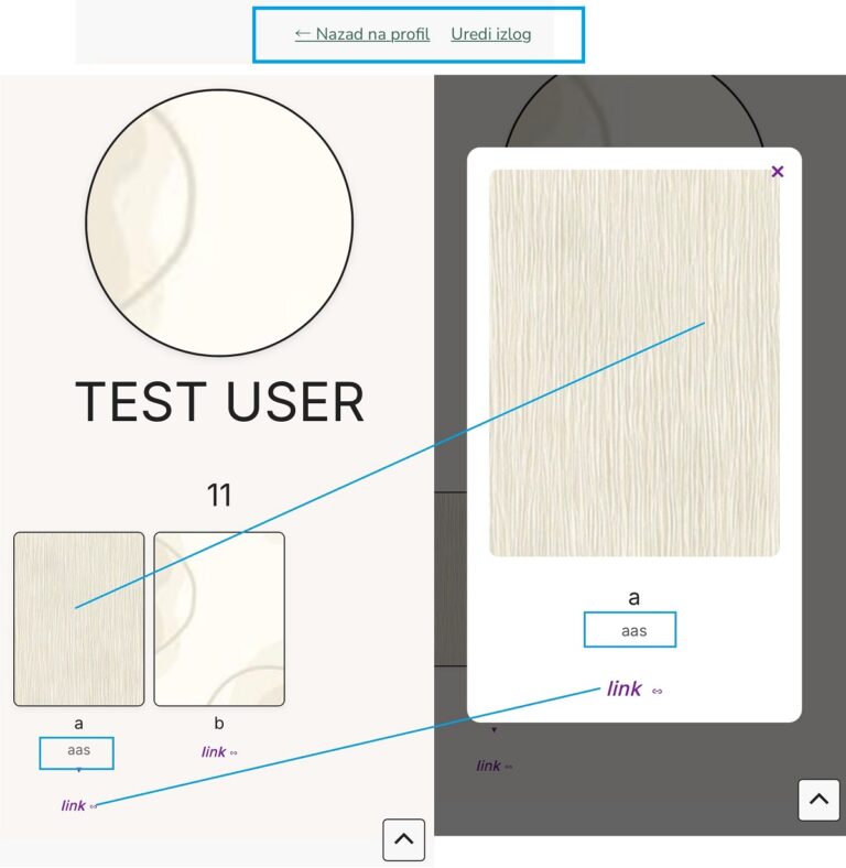 - Linkove „Korisnički nalog“ i „Uredi profil“ vidiš samo ti i služe za lakšu navigaciju. Posetioci vide „čistu stranicu“.