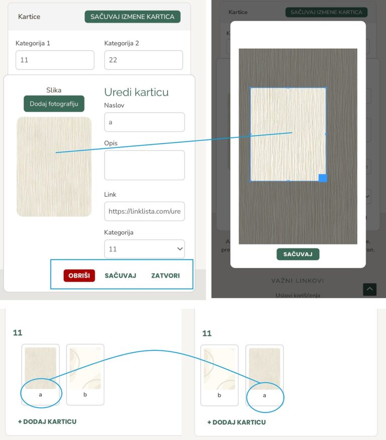 - Kartica se može urediti, sačuvati, obrisati ili možeš otkazati izmene. Imaš sve opcije.
